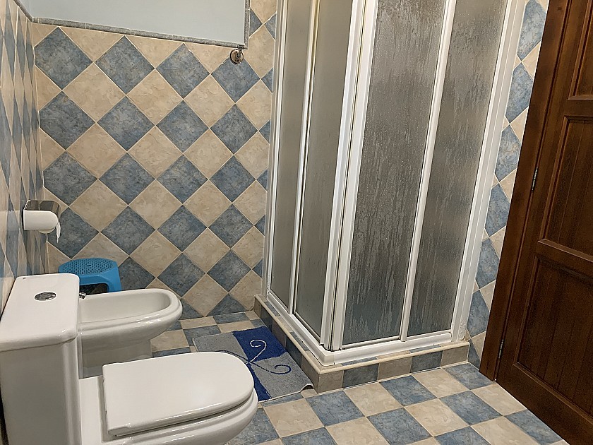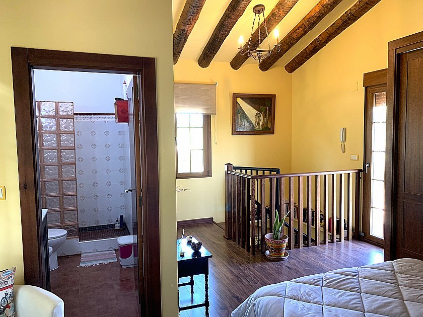 De wenteltrap leidt ons naar de eerste verdieping, hier hebben we een grote hoofdslaapkamer, opnieuw met verwarming en een en-suite badkamer met inloopdouche, badmeubel, bidet en w/c.