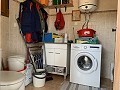 Buiten gaan we naar de zijkant van het huis, waar we een aparte bijkeuken hebben met de boiler en wasmachine, en toilet en wastafel, zodat je desgewenst een zwembad kunt toevoegen en een badkamer in de buurt hebt.